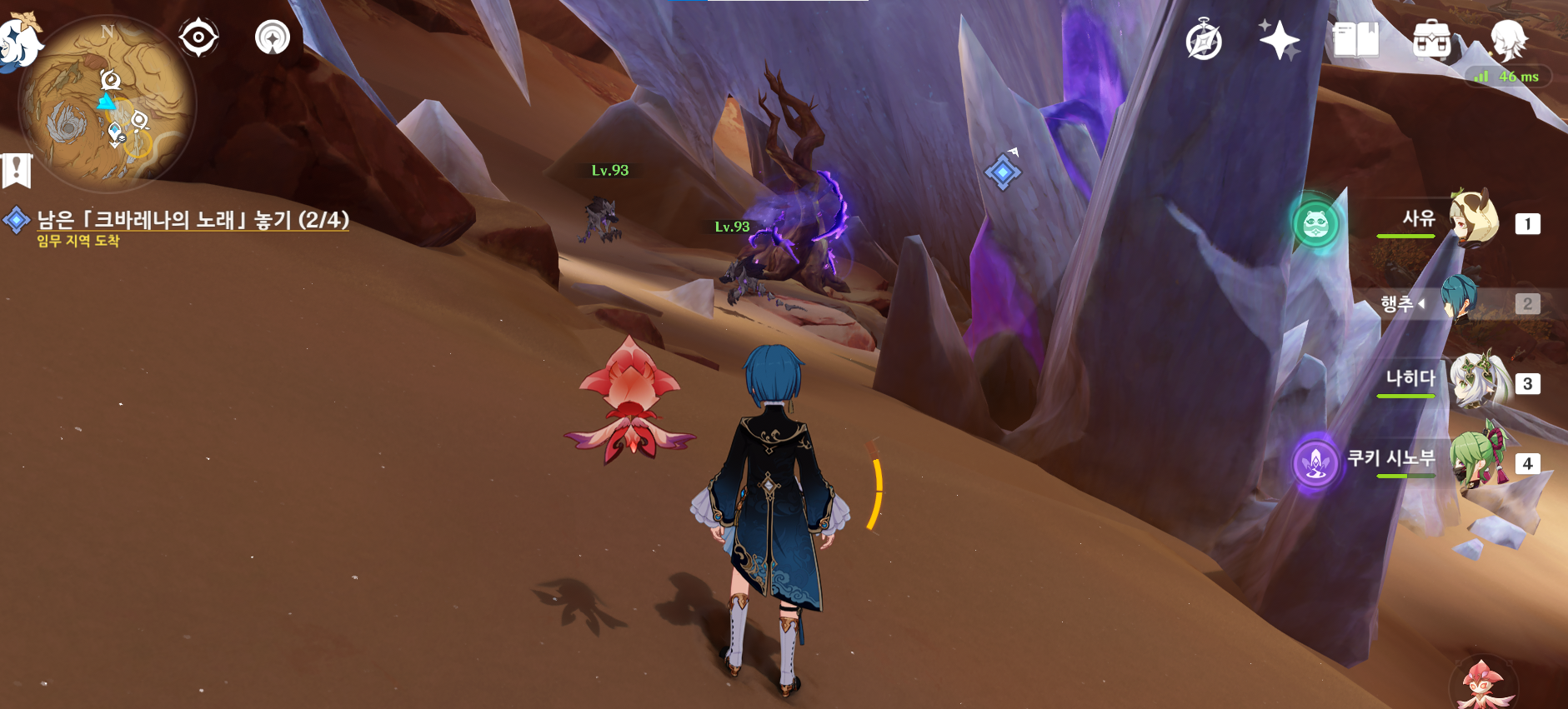 이렇게 보라색 감싸있는 거는 크바레나의 노래가 바로 안올려져서 주변의 살펴봐야한다.