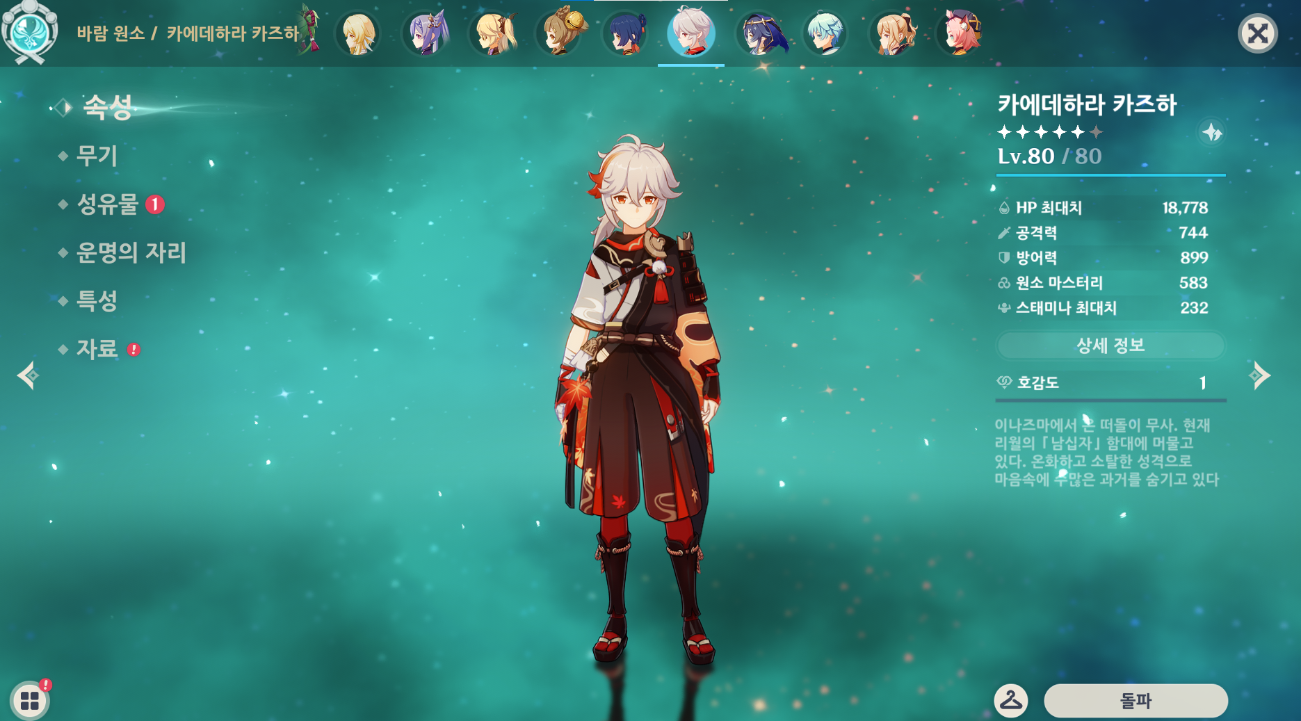 원래는 카즈하만 뽑힐거라 생각하고 알하이탐은 또 픽뚫날거라 생각해서 카즈하 재료들만 모았는데.. 모아둔 경험치 책이랑 돌파 재료들 갈아 넣어서 바로 80 찍었다!