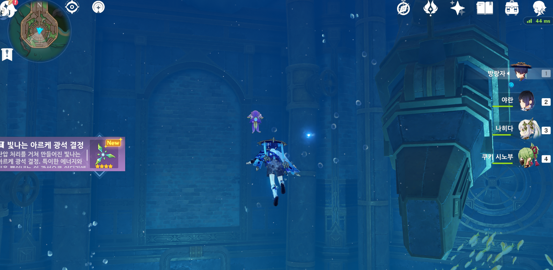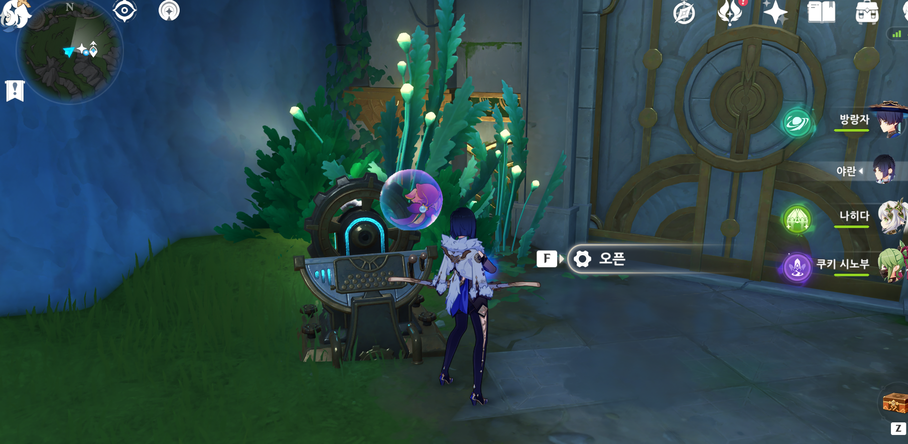 먼저 브라베의 단압 공방으로 가야한다. 천년 묵은 진주 기른 근방의 워프 포인트를 타준 후 다음 위치까지 가준다. 해당 위치에서 잠수를 하고 앞으로 나아가면 공방에 도착하게 된다. (공방으로 향하는 길에 있는 간단한 기믹들을 푸는 과정은 생략했다.)