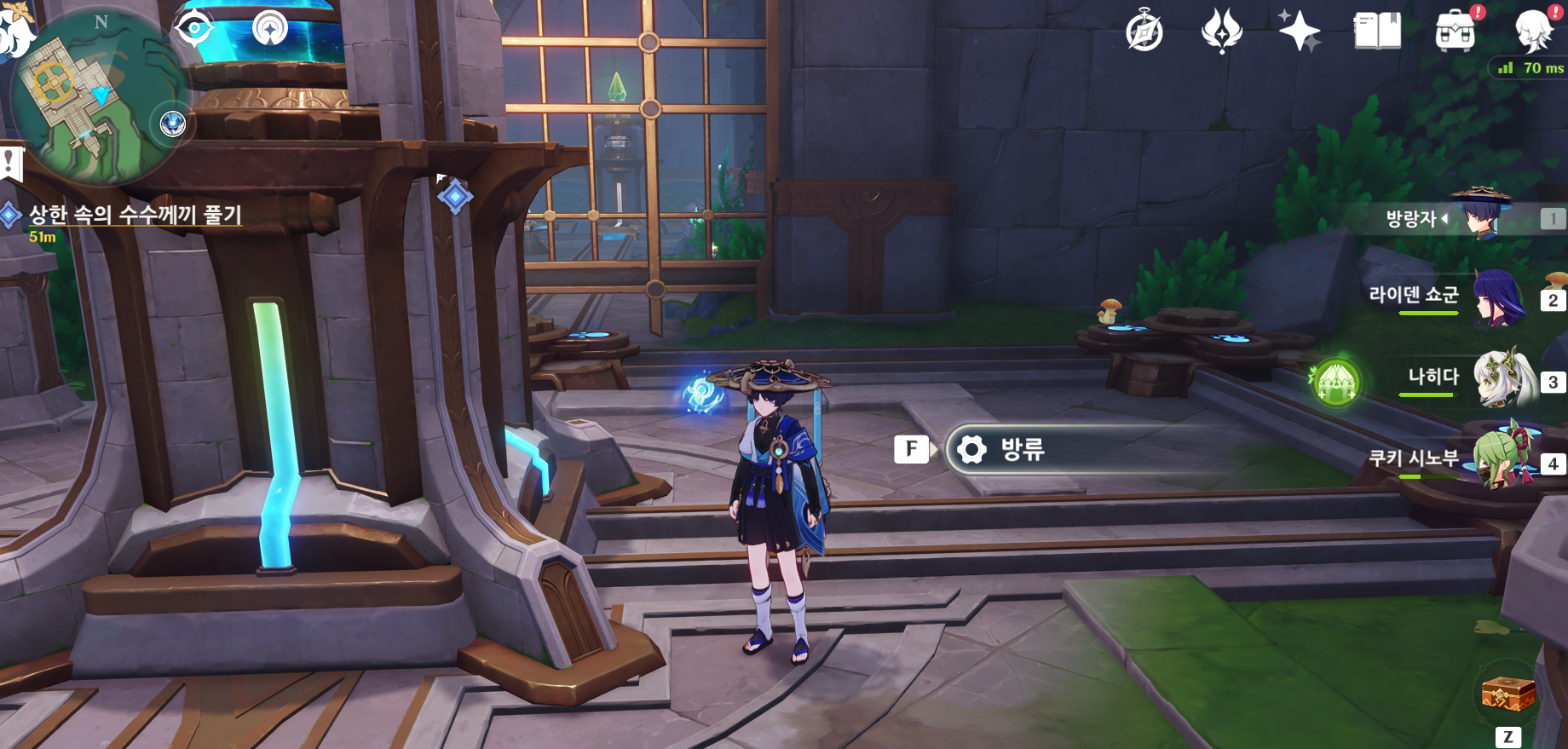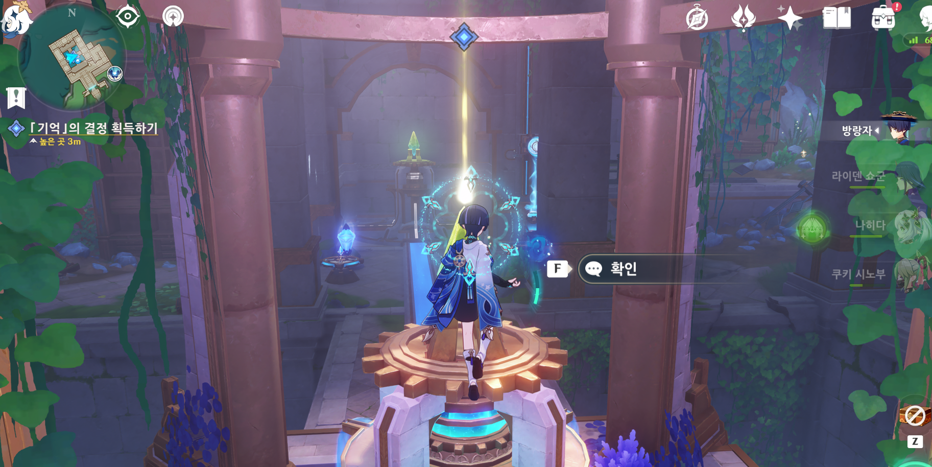 해당 기믹의 경우 우선 근처에 상호 작용할 수 있게 (문어 능력) 스킬을 만들어 온 상태에서 진행한다. (현재 위치 기준 방랑자가 바라보는 방향에 있는 곳에 보이는 장치와 상호작용하면 스킬이 생긴다!)