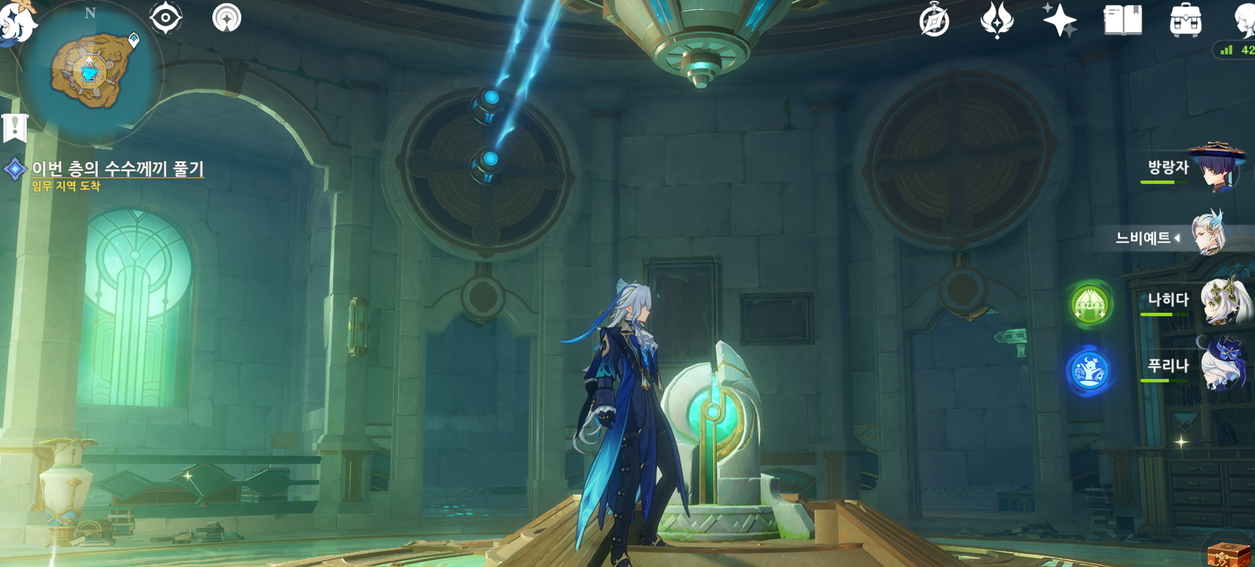 먼저 게슈탈트의 탑에 도착 후 안에 들어오면 다음과 같은 화면이 된다. 그럼 바로 앞에 장치와 상호작용하여 기술을 익혀온다.