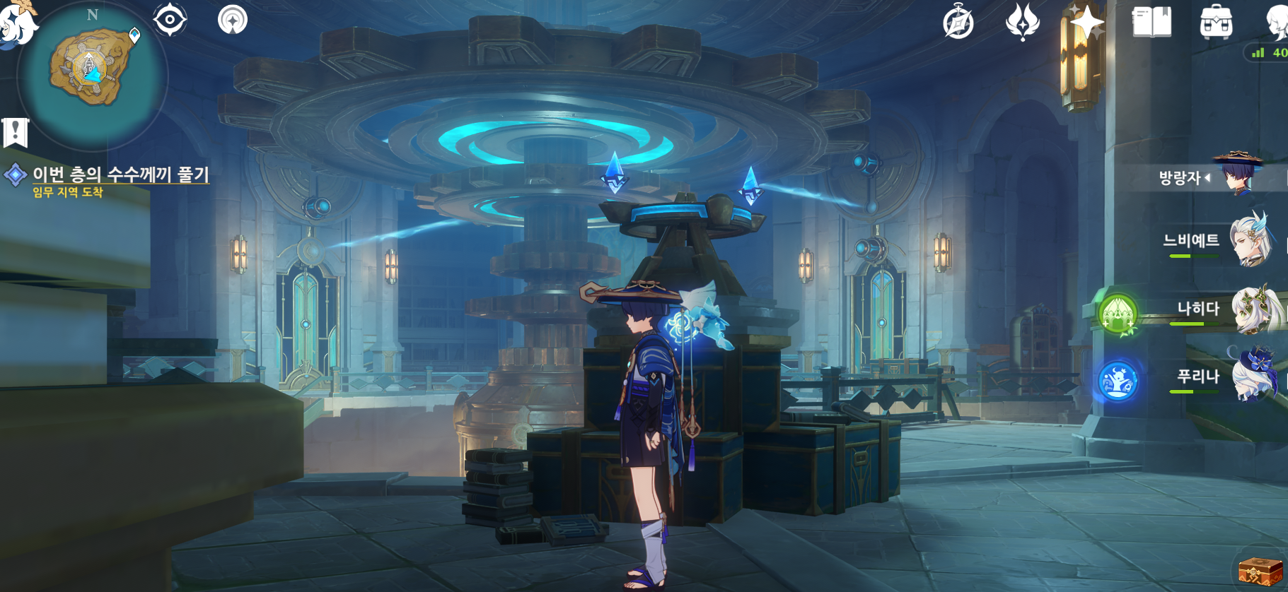 진입하면 앞에 강아지 기계들이 보인다. 모두 잡아주면 장치가 해금되고, 이를 가동해준다.