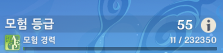 경험치 조금 남아서 임무 좀 더하고 상자도 좀 까러 다니고 비경 도니까 드디어 55가 되었다!! 얼른 월드 레벨 올리는 퀘스트 하러 가야지~~