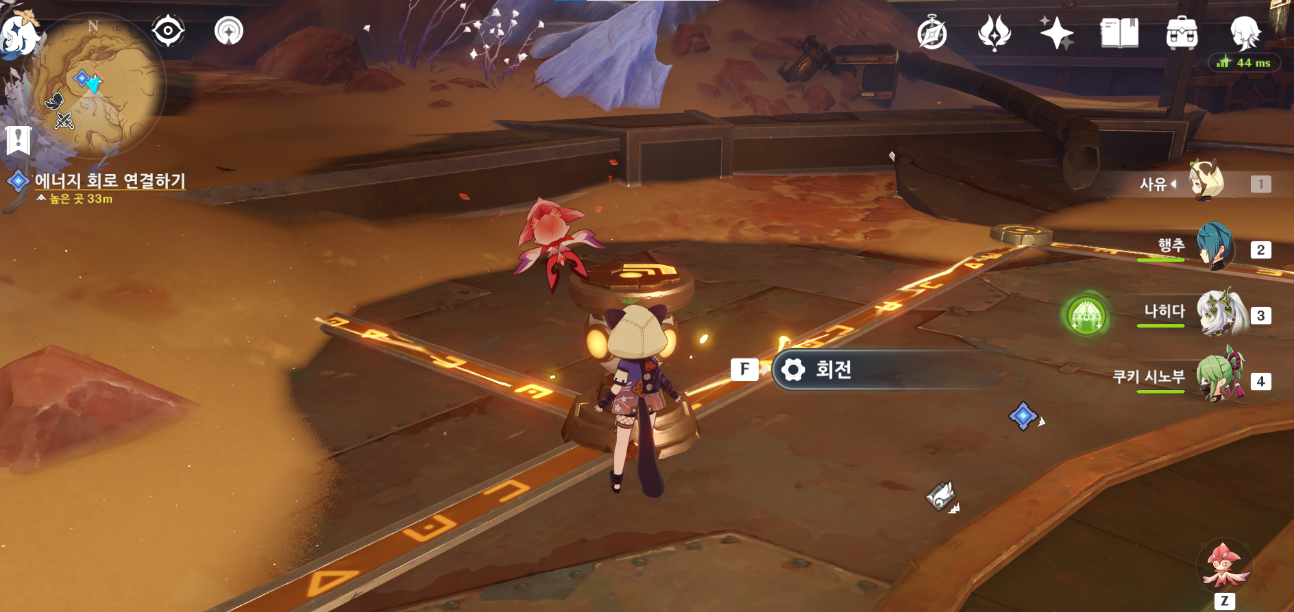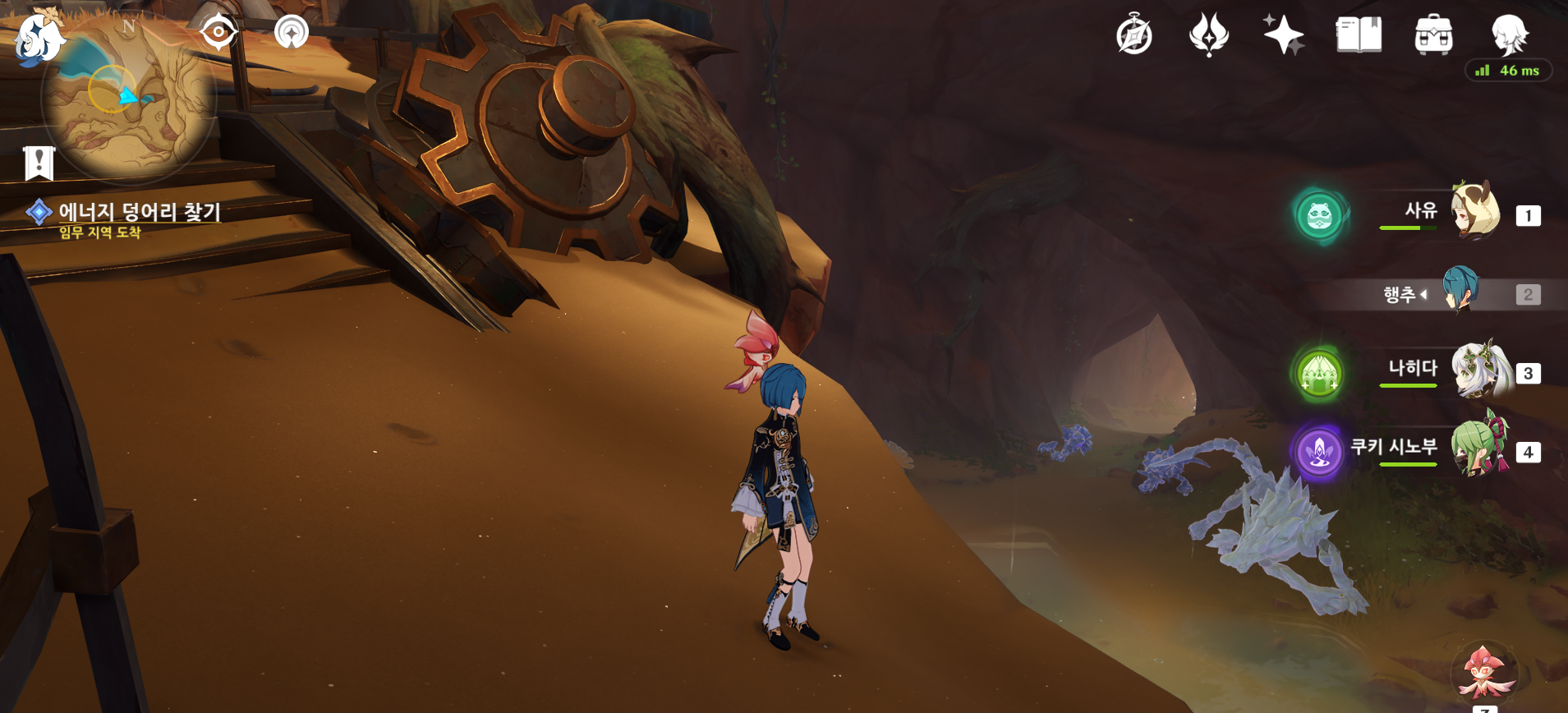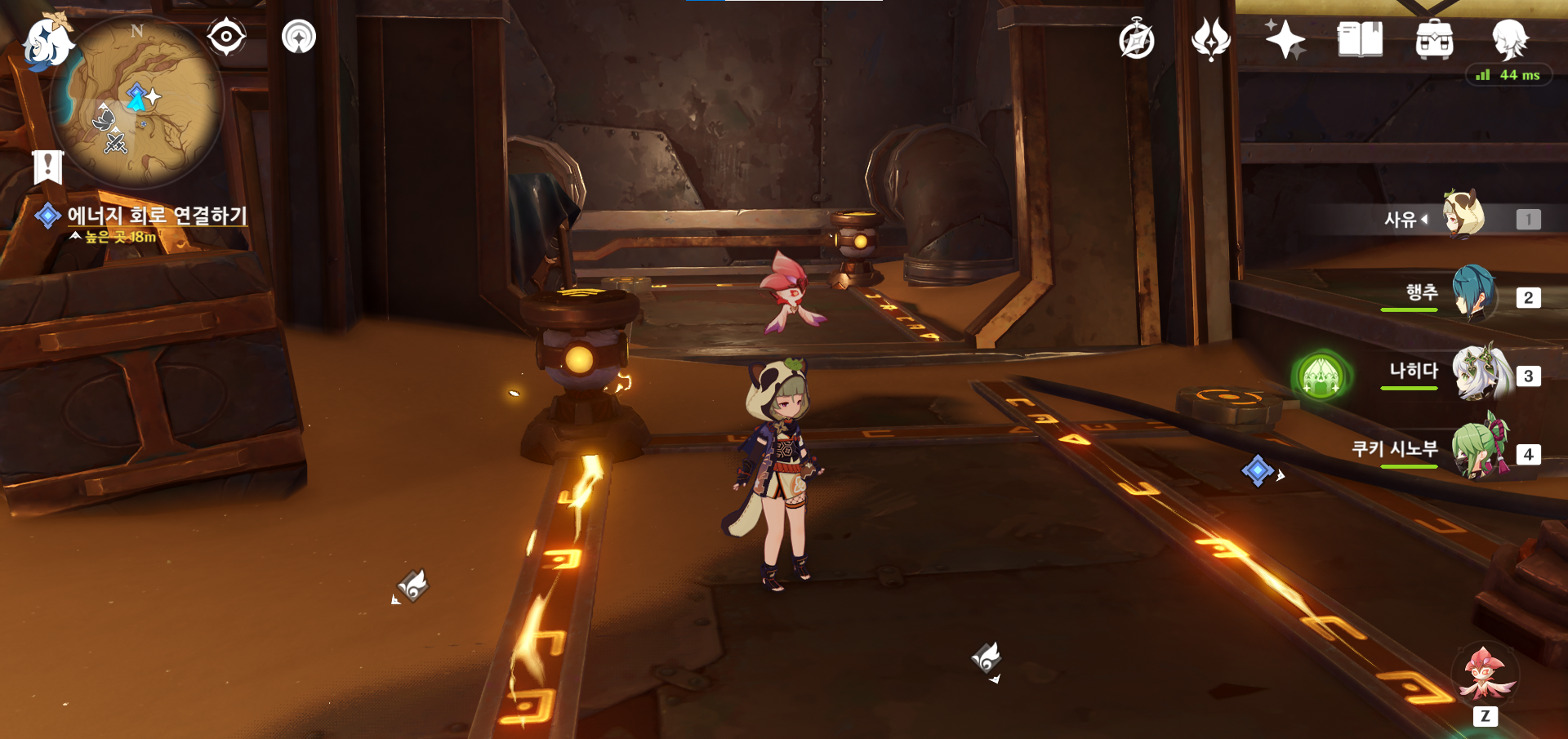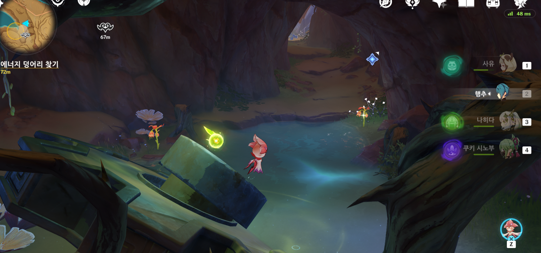 우선 처음 시작은 말걸고 지도같은거 받고 에너지 덩어리 찾아 다니는 것이다. 처음 여기 도착했을 때는 뭐해야하나 싶어서 소루쉬로 주변 돌아다니다 잿빛 수정 풀어주는 것(?)을 찾아서 데리고 왔다.